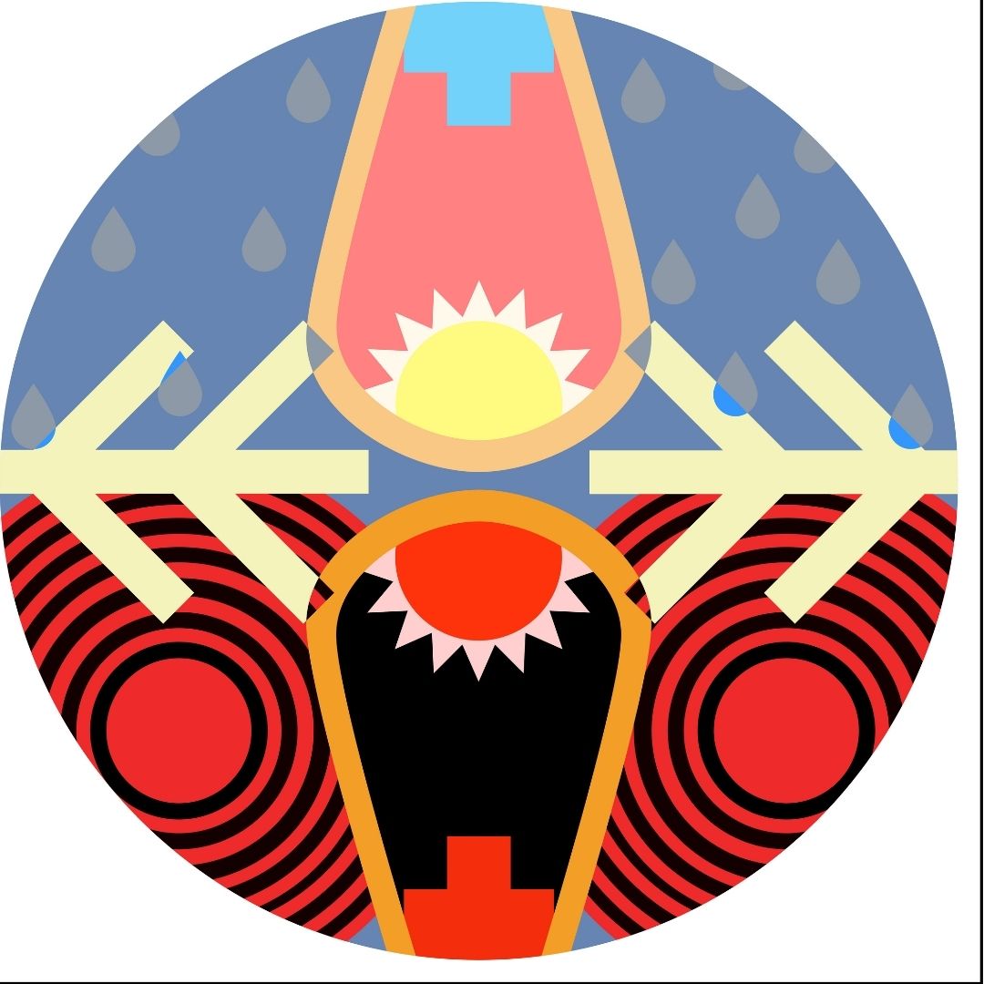This print is part of a series of 13 prints and derived from elements that were created for the 2019 Toronto Nuit Blanche, Kings and Queens of Scarborough project titled Tepknuset. For this site-specific installation, a series of large suspended fabric prints referencing porcupine quillwork and aluminum elements depicting Mi'kmaq petroglyph depictions of stars were suspended over a busy public space while 13 circular prints, each representing a moon in the Mi'kmaq year, were mounted on the ground below. The elements of the installation spoke of place, time, changing seasons and environment as embedded in Mi'kmaq visual culture. The piece was read as a story, but a story that could be narrated from any entry point, following shape, colour and form to experience the narratives of land, home and our place in the universe. A giclée print is an archival-quality printed reproduction of an original artwork, made using a specialized ink spray process (giclée is French for "to spray") developed exclusively for fine art printing. Giclée prints are printed either on canvas or fine art paper using 100% archival inks and media. The giclée print is the closet possible reproduction of an original work of art afforded by technology and has become the new print standard for artists.