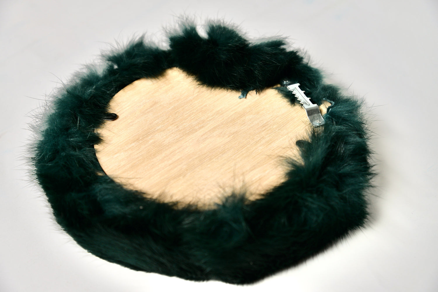 Pleasure Moons is a series of moon shaped beadings encircled by commercially dyed rabbit fur of a matching colour. These works were instinctually created for pleasure and colour play through an automatic beading process looking at material, construction and composition as part of the creative process. Mounting hardware included, and custom framing with glass is available for an additional fee.