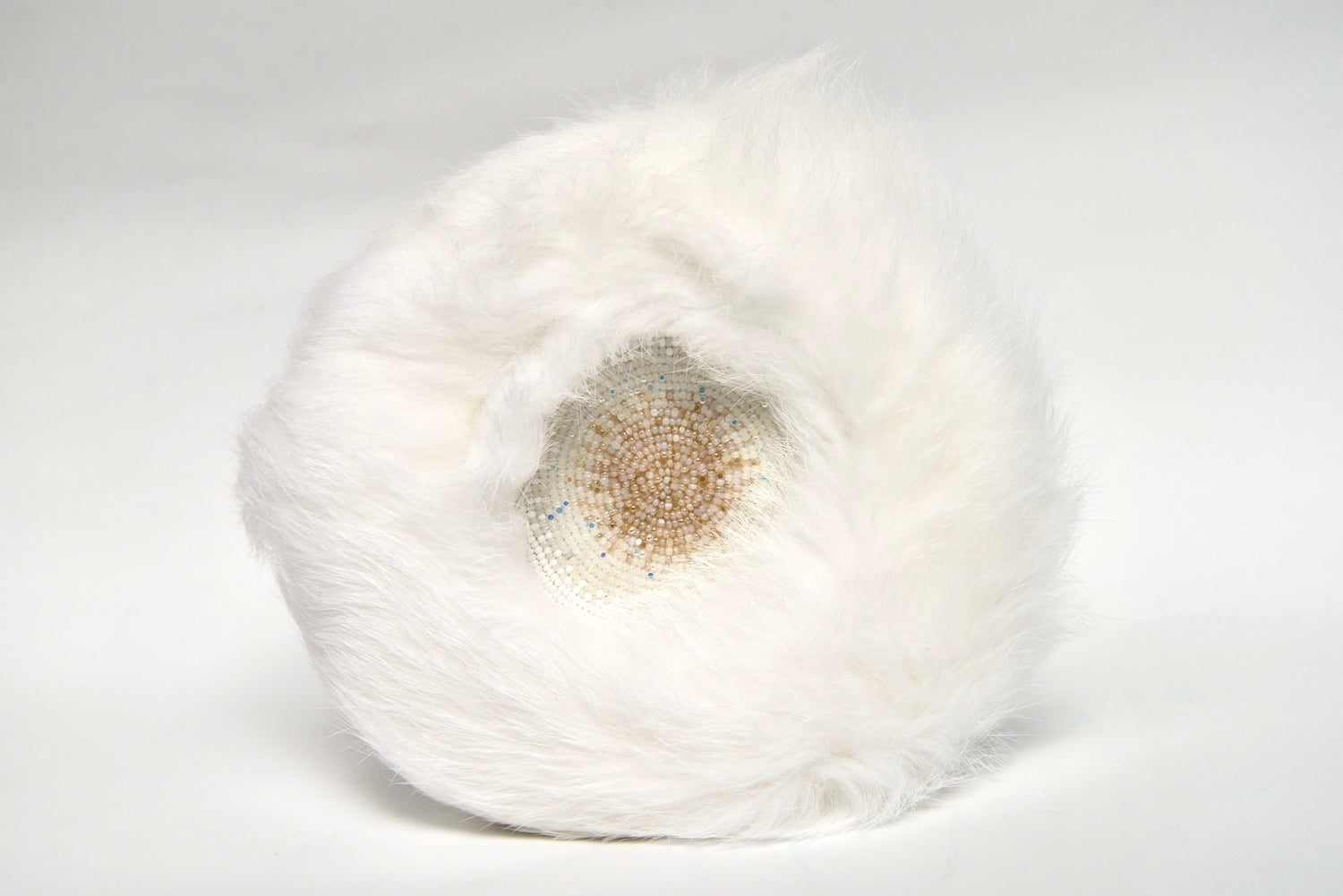 rabbit fur, charlotte beads, and wood frame