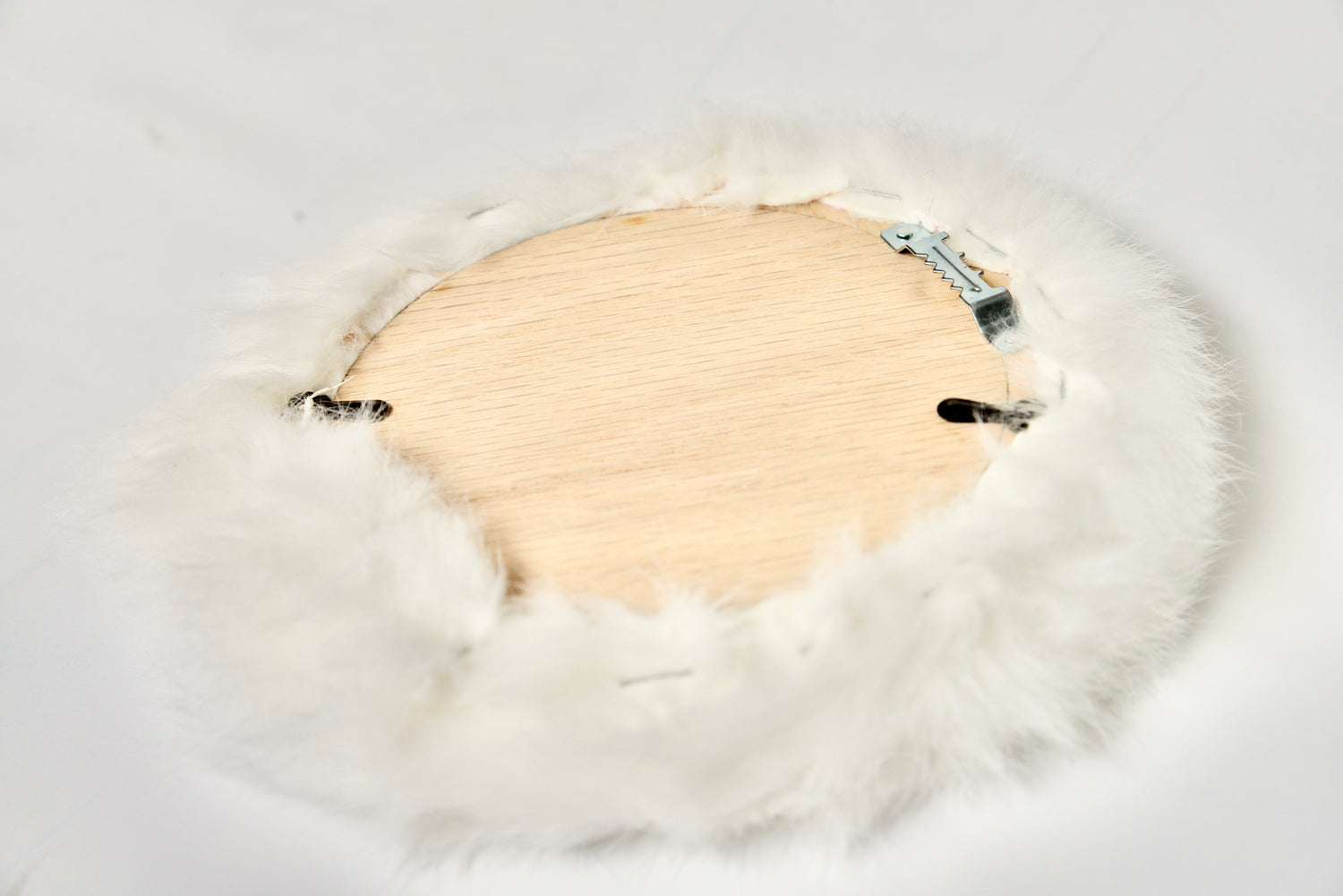 rabbit fur, charlotte beads, and wood frame