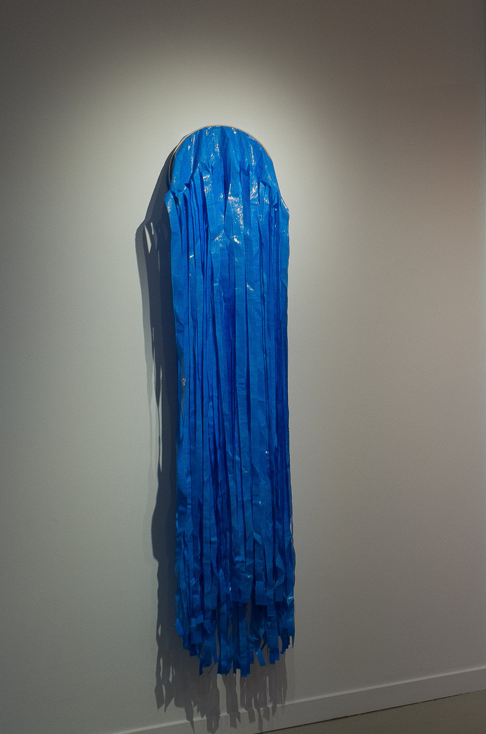 Amy Malbeuf creates a reflection on historical Métis material culture, and references historical and contemporary modes of exchange in this work. She uses this rounded shape across many artworks, and it reflects the artist's interpretation of a Métis fire bag.