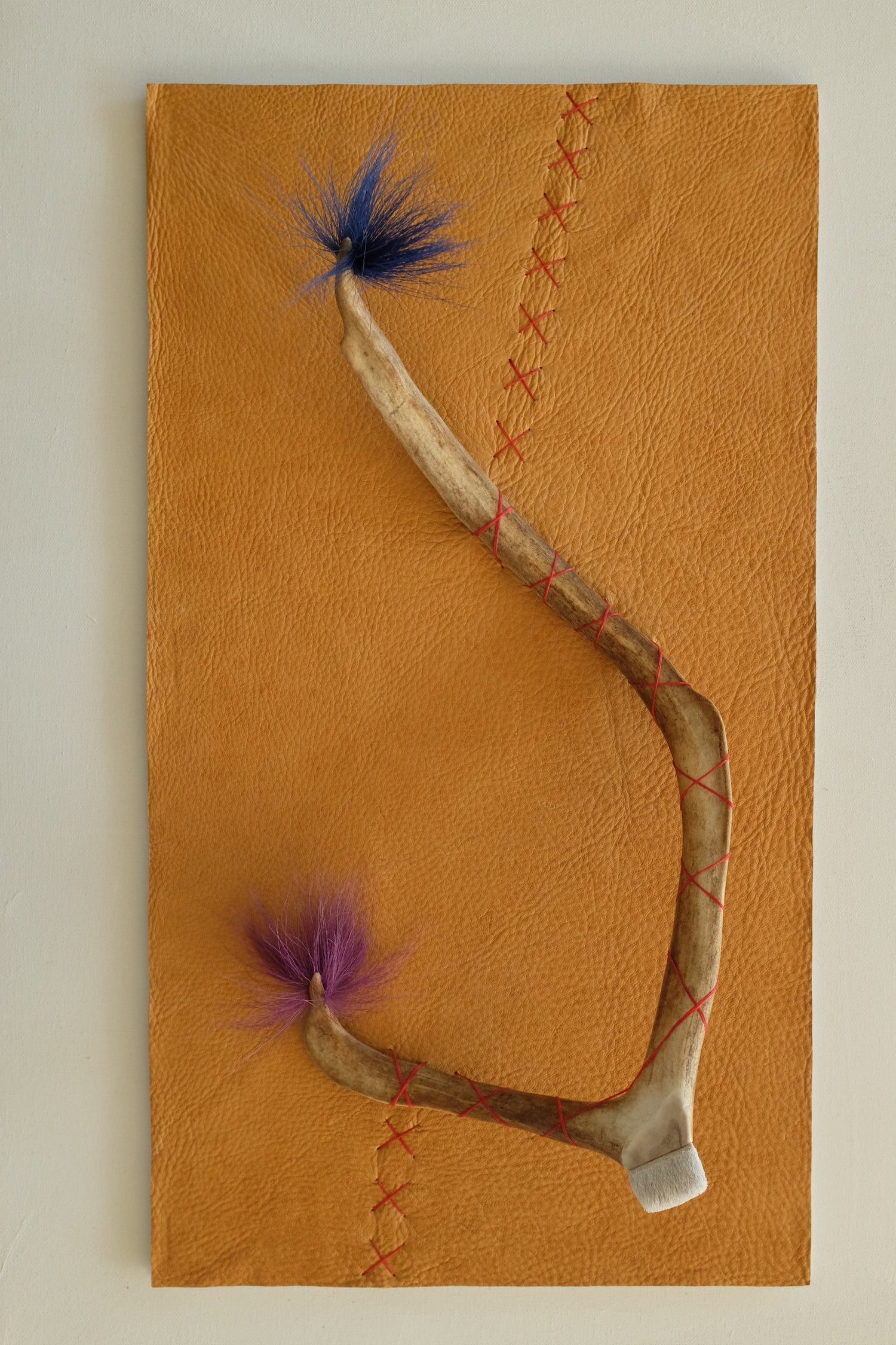 sinew, caribou hair, caribou antler on elk hide
