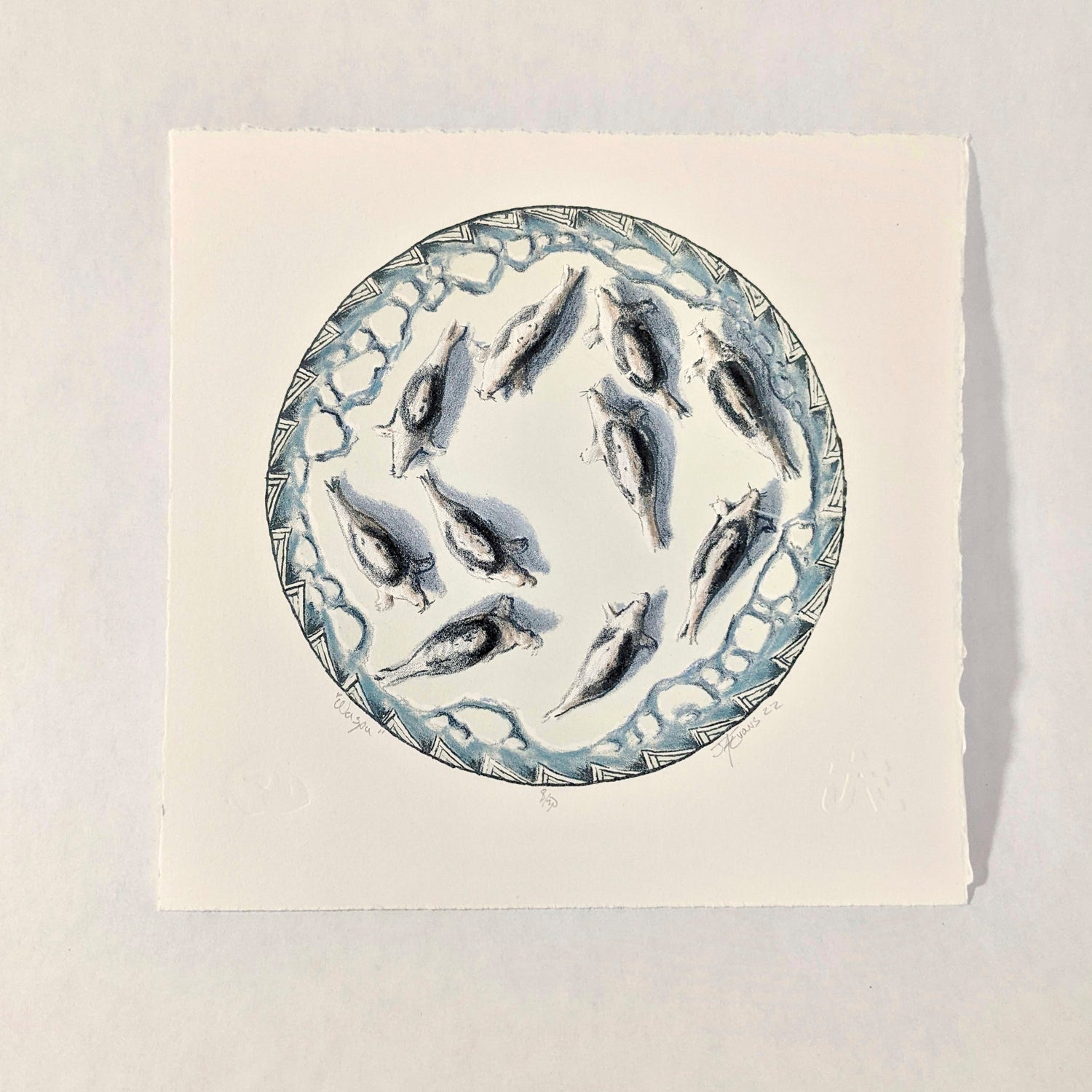Jerry Evans works primarily as a painter and printmaker but also brings together his experience in film, design, and traditional hand poke tattooing to reach beyond Western ideologies as a means of expression and gift exchange. Jerry’s practice is deeply rooted in his Mi’kmaq heritage and his artistry comes alive in the creation of his own regalia for powwow dancing and in his commitment to sharing and learning with communities all over Mi’kma’ki.